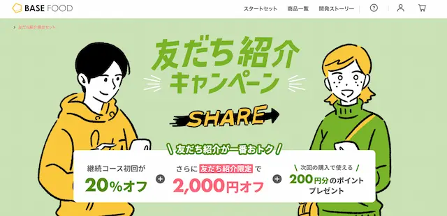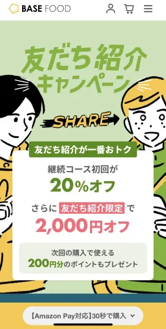 これはすでにベースフードを利用している友だちからの招待URLでお得に購入できるというキャンペーン!